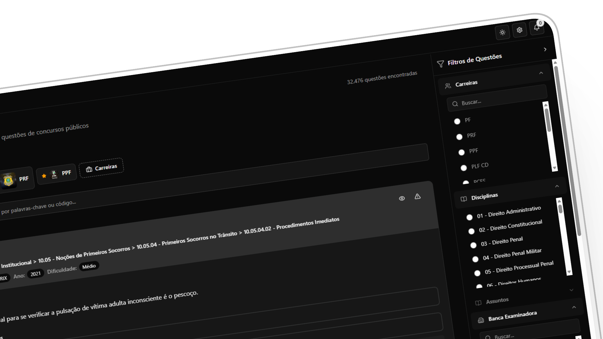 A plataforma de questões feita para sua aprovação em carreiras policiais.